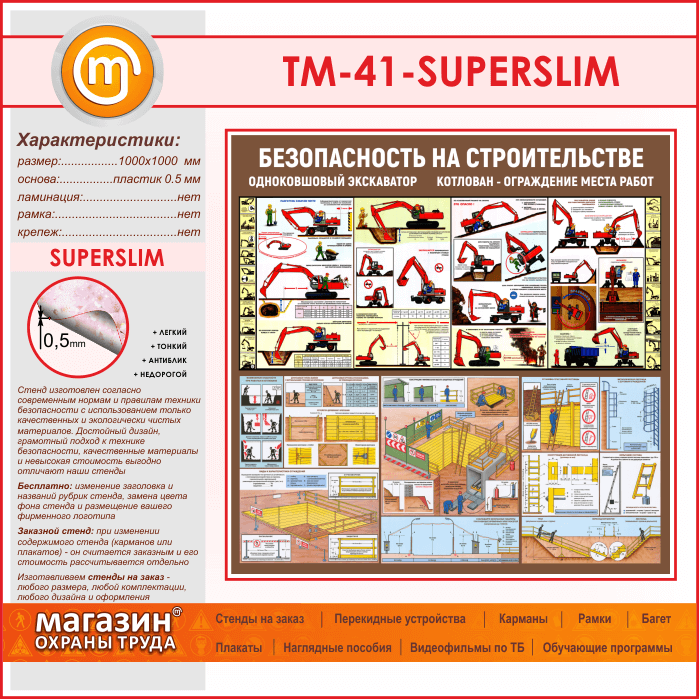 Стенд «Безопасность земляных работ. Экскаватор, котлован» (TM-41-SUPERSLIM) в Кызыле купить