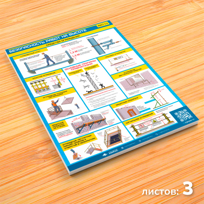 Плакаты «Безопасность работ на высоте» (М-52, ламинированная бумага, А2, 3 листа) в Кызыле купить