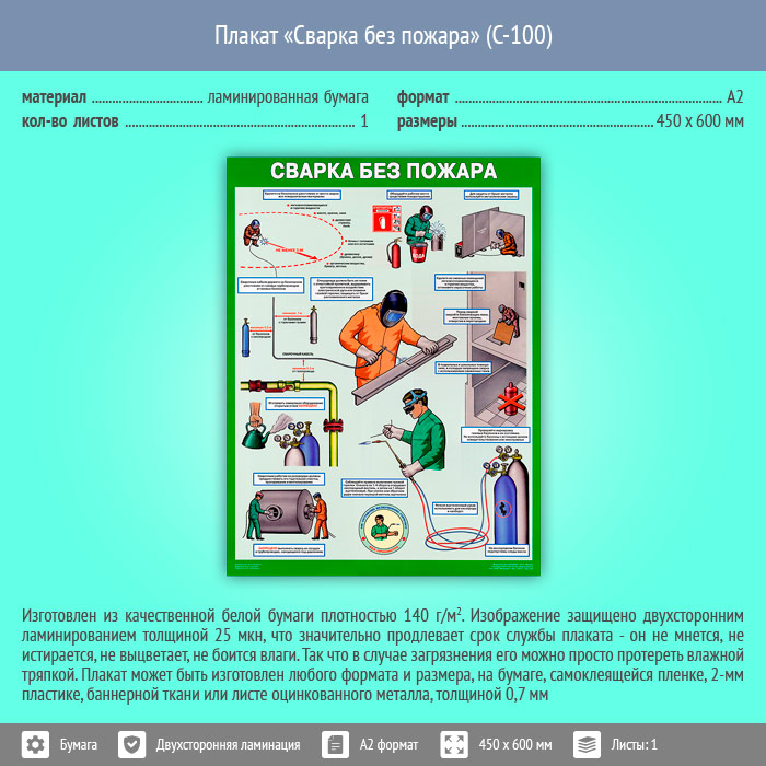 Плакат «Сварка без пожара» (С-100, ламинированная бумага, А2, 1 лист) в Кызыле купить