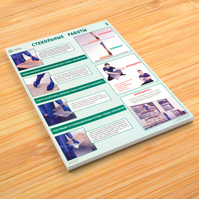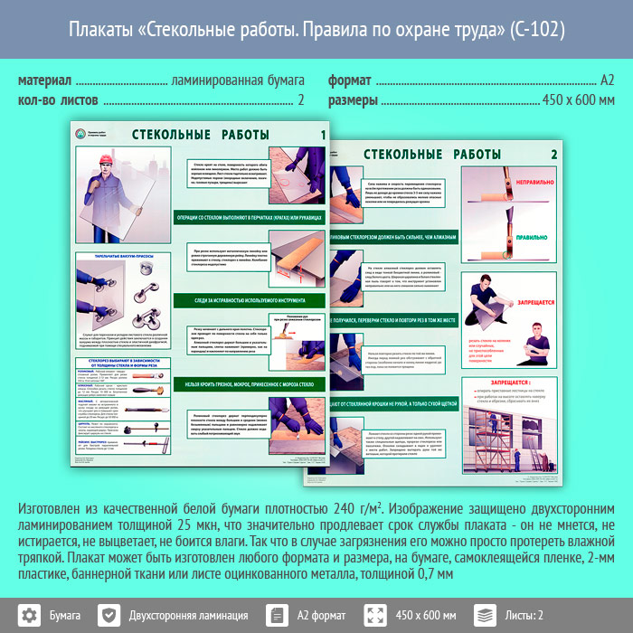 Плакаты «Стекольные работы. Правила по охране труда» (С-102, ламинированная бумага, А2, 2 листа) в Кызыле купить