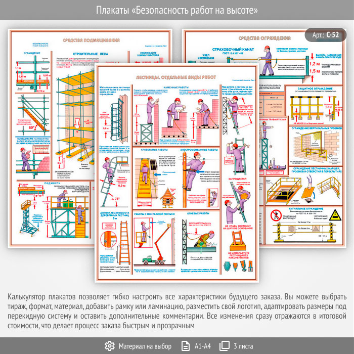 Плакаты «Безопасность работ на высоте» (С-52, 3 листа) в Кызыле купить