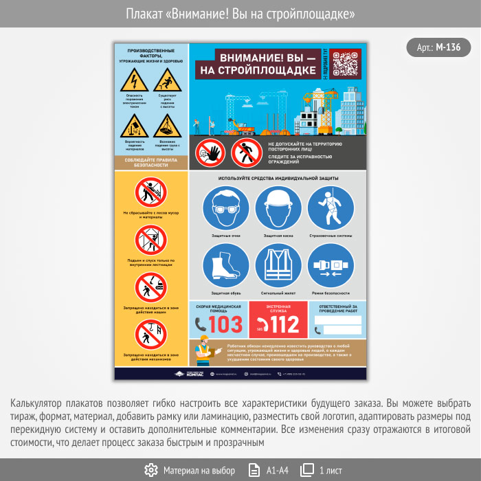 Плакат «Внимание! Вы на стройплощадке» с QR (М-136, 1 лист) в Кызыле купить