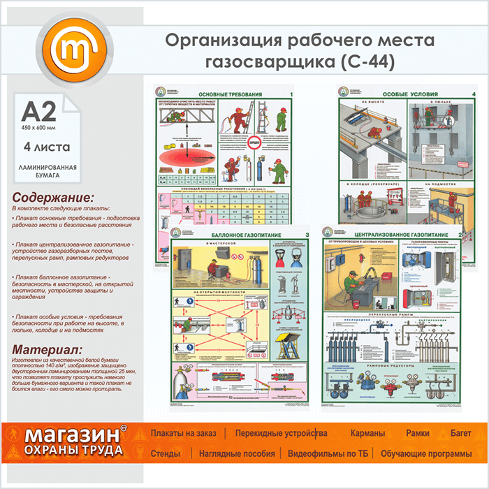 Плакаты «Организация рабочего места газосварщика» (С-44, ламинированная бумага, А2, 4 листа) в Кызыле купить