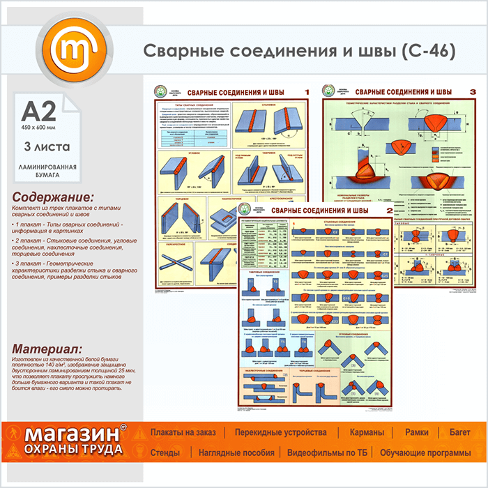 Плакаты «Сварные соединения и швы» (С-46, ламинированная бумага, А2, 3 листа) в Кызыле купить