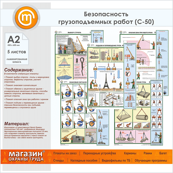 Плакаты «Безопасность грузоподъемных работ» (С-50, ламинированная бумага, А2, 5 листов) в Кызыле купить