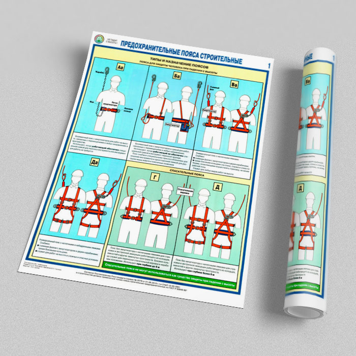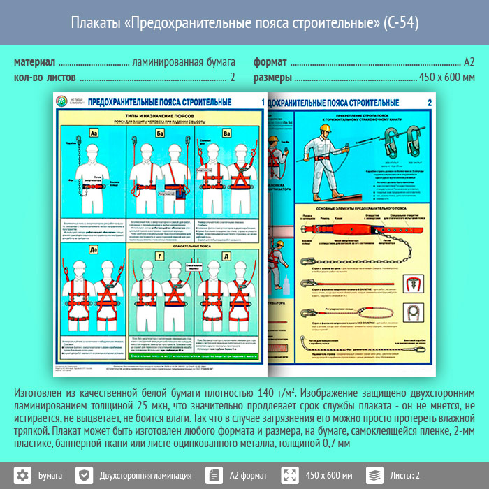 Плакаты «Предохранительные пояса строительные» (С-54, ламинированная бумага, А2, 2 листа) в Кызыле купить