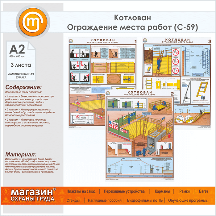 Плакаты «Котлован. Ограждение места работ» (С-59, ламинированная бумага, А2, 3 листа) в Кызыле купить