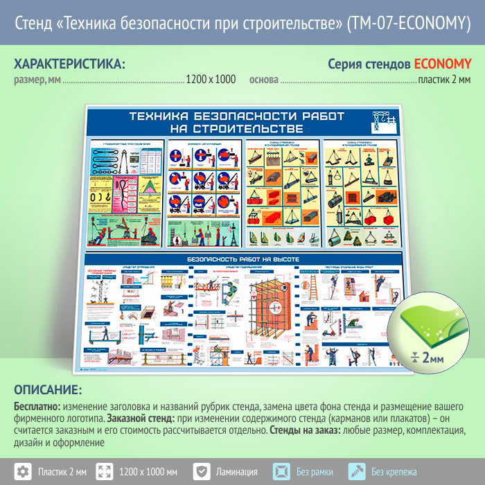 Стенд «Техника безопасности при строительстве» (TM-07-ECONOMY) в Кызыле купить