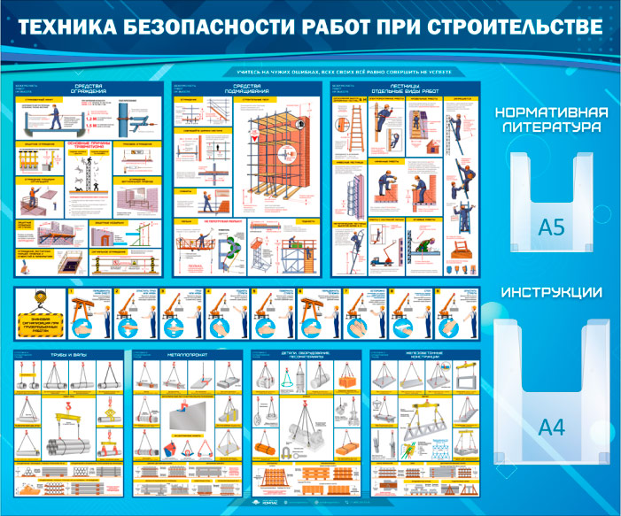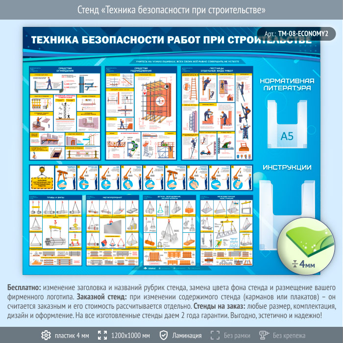 Стенд «Техника безопасности при строительстве» с 2 объемными карманами (TM-08-ECONOMY2) в Кызыле купить