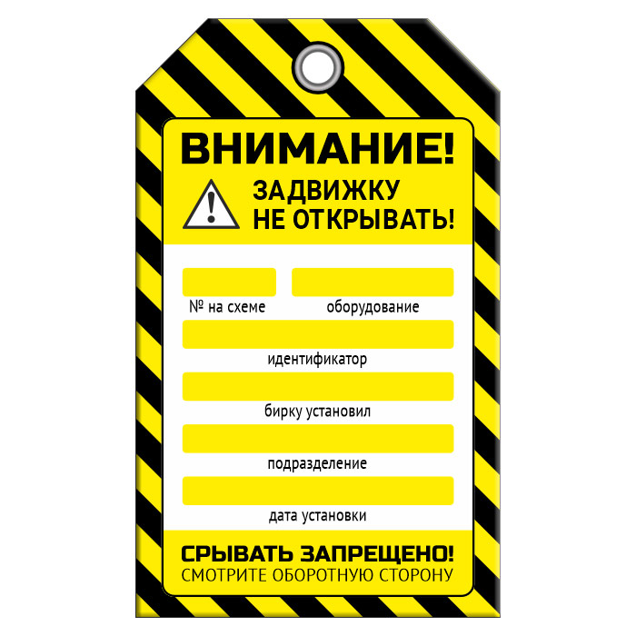 Бирка «ЗАДВИЖКУ НЕ ОТКРЫВАТЬ!» (1 шт., двусторонняя, пластик, 70х115 мм) в Кызыле купить