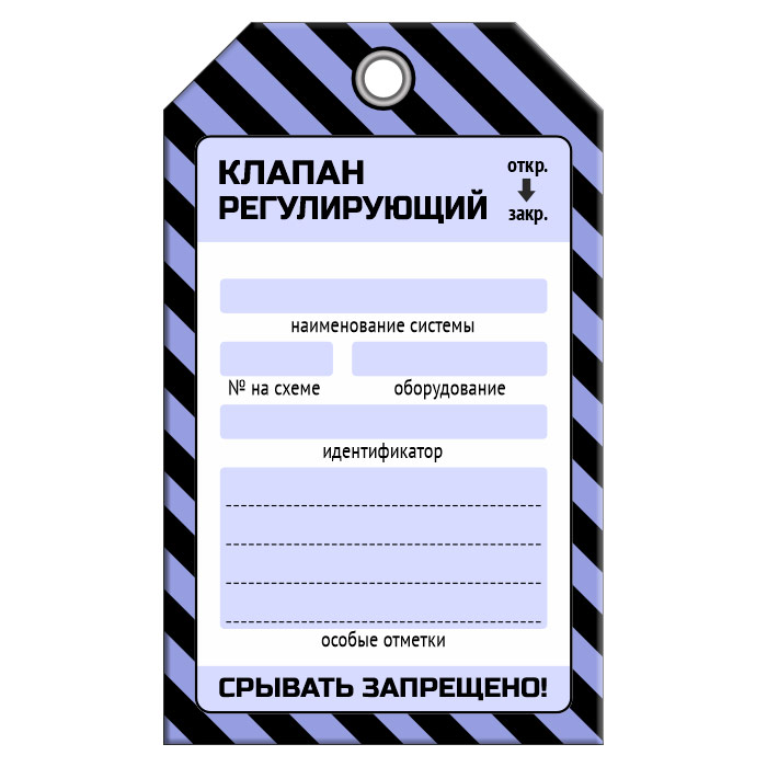 Бирка «КЛАПАН РЕГУЛИРУЮЩИЙ» (1 шт., односторонняя, пластик, 70х115 мм) в Кызыле купить
