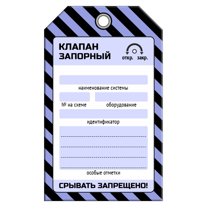 Бирка «КЛАПАН ЗАПОРНЫЙ» (1 шт., односторонняя, пластик, 70х115 мм) в Кызыле купить