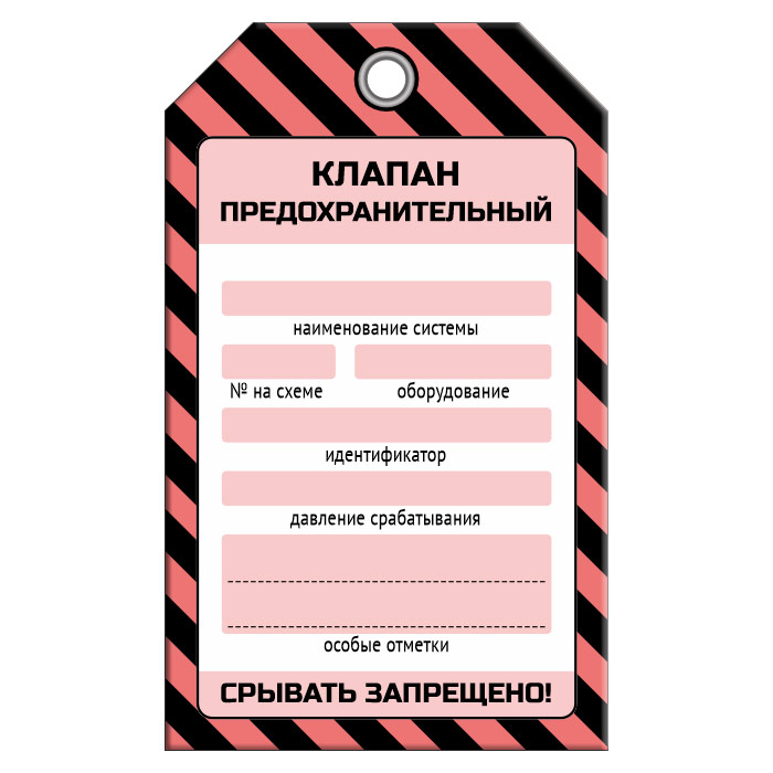 Бирка «КЛАПАН ПРЕДОХРАНИТЕЛЬНЫЙ» (1 шт., односторонняя, пластик, 70х115 мм) в Кызыле купить