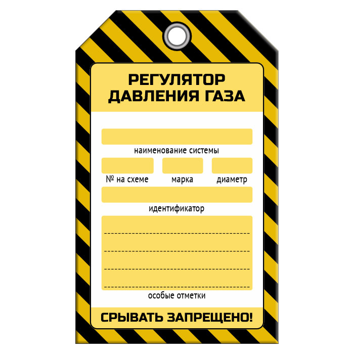 Бирка «РЕГУЛЯТОР ДАВЛЕНИЯ ГАЗА» (1 шт., односторонняя, пластик, 70х115 мм) в Кызыле купить