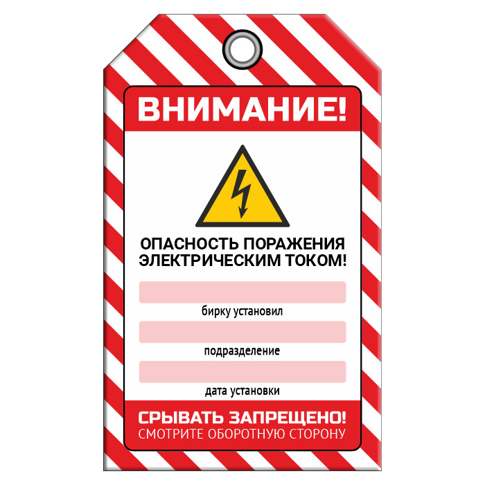 Бирка «ОПАСНОСТЬ ПОРАЖЕНИЯ ТОКОМ» (1 шт., двусторонняя, пластик, 70х115 мм) в Кызыле купить