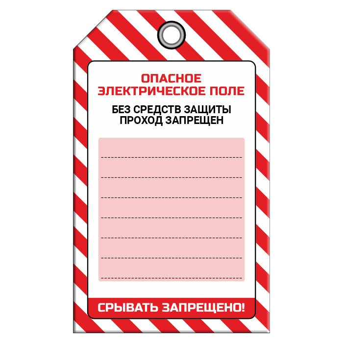 Бирка «ОПАСНОЕ ЭЛЕКТРИЧЕСКОЕ ПОЛЕ» (1 шт., односторонняя, пластик, 70х115 мм) в Кызыле купить