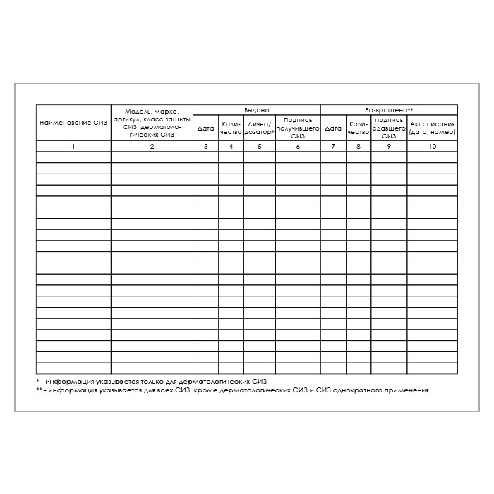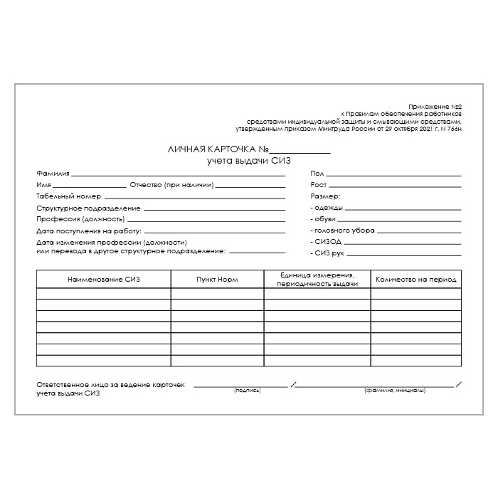 Карточка выдачи СИЗ (приказ Минтруда России от 29 октября 2021 г. №766н, упаковка 100 штук) в Кызыле купить