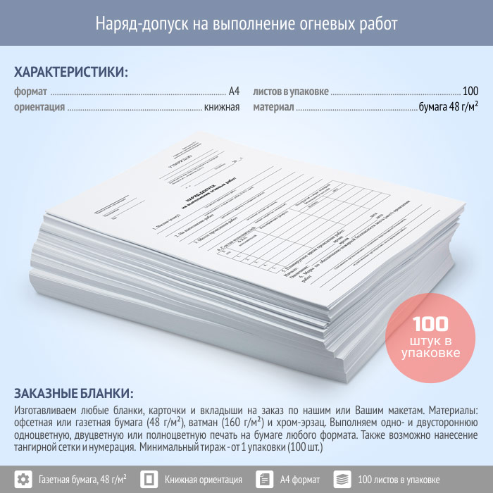 Наряд-допуск на выполнение огневых работ (упаковка из 100 штук) в Кызыле купить