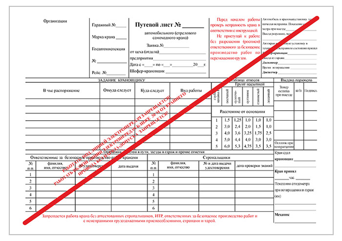 Путевой лист самоходного крана (упаковка из 100 штук) в Кызыле купить