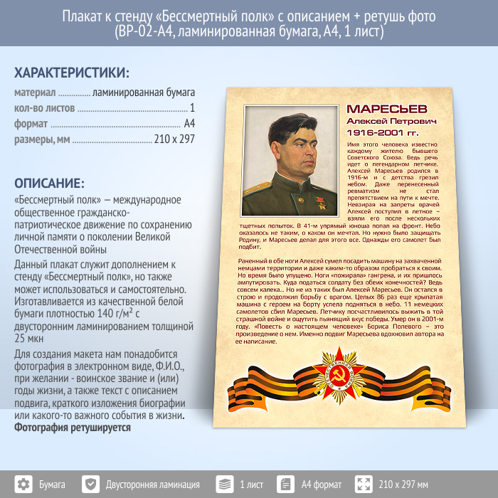 Плакат к стенду «Бессмертный полк» с описанием + ретушь фото (BP-02-A4, ламинированная бумага, А4, 1 лист) в Кызыле купить