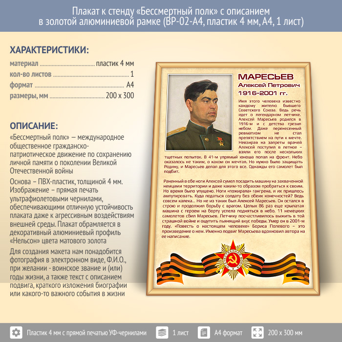 Плакат к стенду «Бессмертный полк» с описанием в золотой (матовой) алюминиевой рамке (BP-02-A4, пластик 4 мм, А4, 1 лист) в Кызыле купить