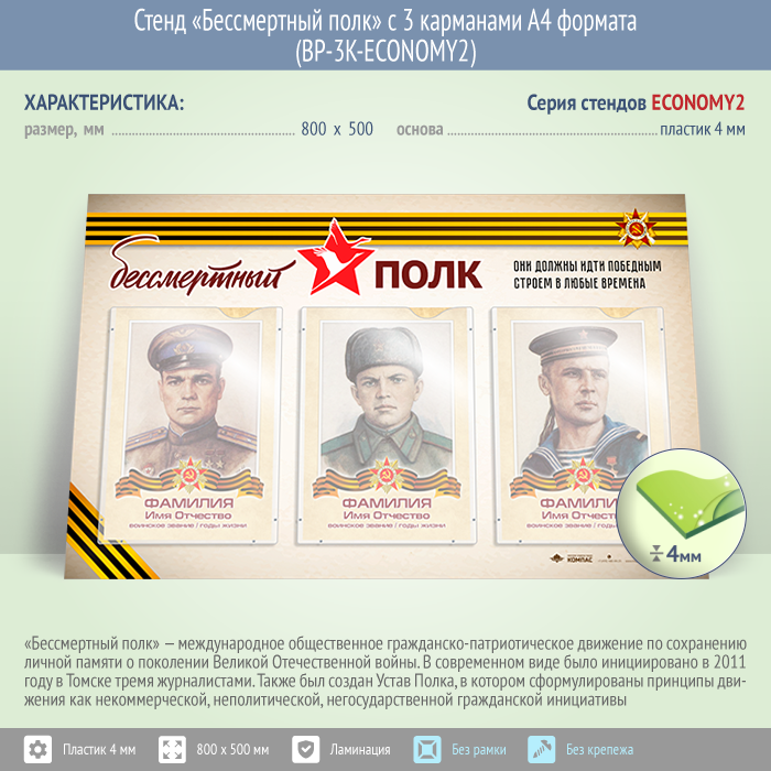 Стенд «Бессмертный полк» с 3 карманами А4 формата (BP-3K-ECONOMY2) в Кызыле купить