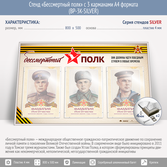 Стенд «Бессмертный полк» с 3 карманами А4 формата (BP-3K-SILVER) в Кызыле купить