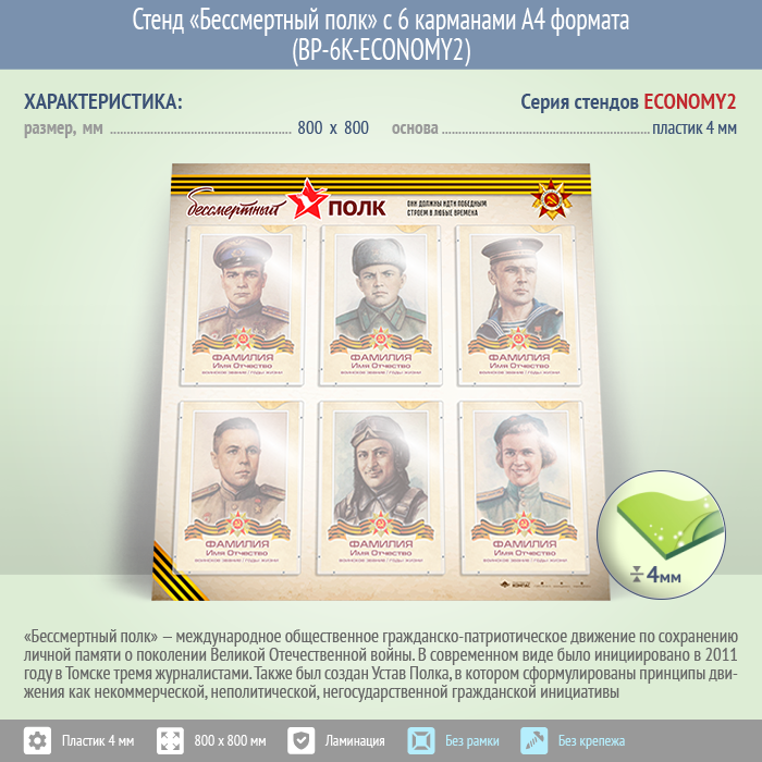 Стенд «Бессмертный полк» с 6 карманами А4 формата (BP-6K-ECONOMY2) в Кызыле купить