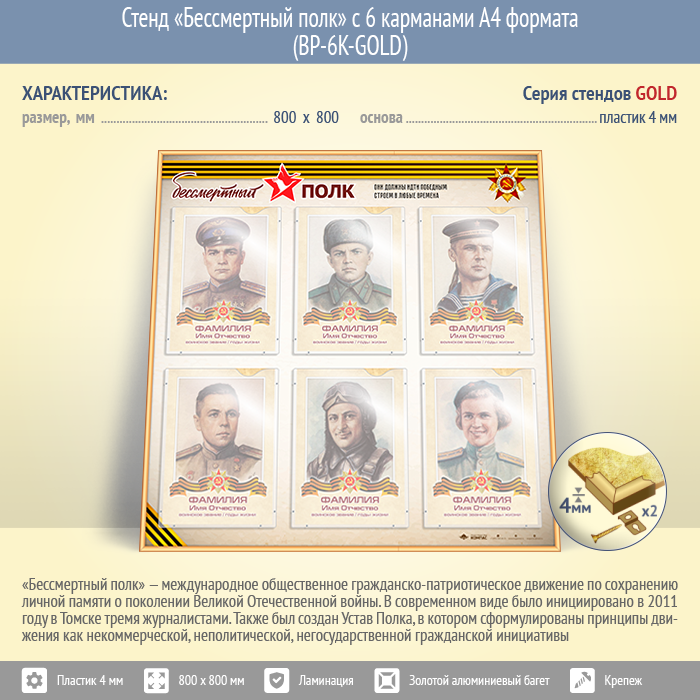 Стенд «Бессмертный полк» с 6 карманами А4 формата (BP-6K-GOLD) в Кызыле купить