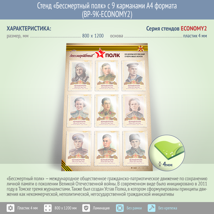 Стенд «Бессмертный полк» с 9 карманами А4 формата (BP-9K-ECONOMY2) в Кызыле купить