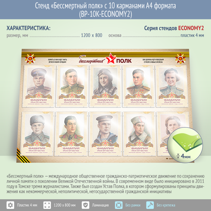 Стенд «Бессмертный полк» с 10 карманами А4 формата (BP-10K-ECONOMY2) в Кызыле купить