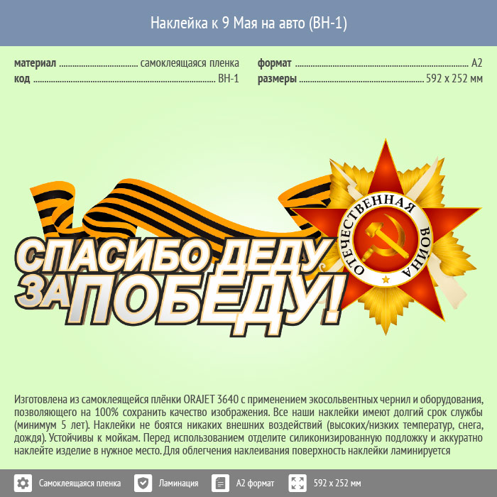 Наклейка к 9 Мая на авто А2 формата (BH-1) в Кызыле купить