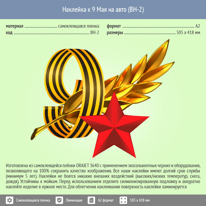 Наклейка к 9 Мая на авто А2 формата (BH-2) в Кызыле купить