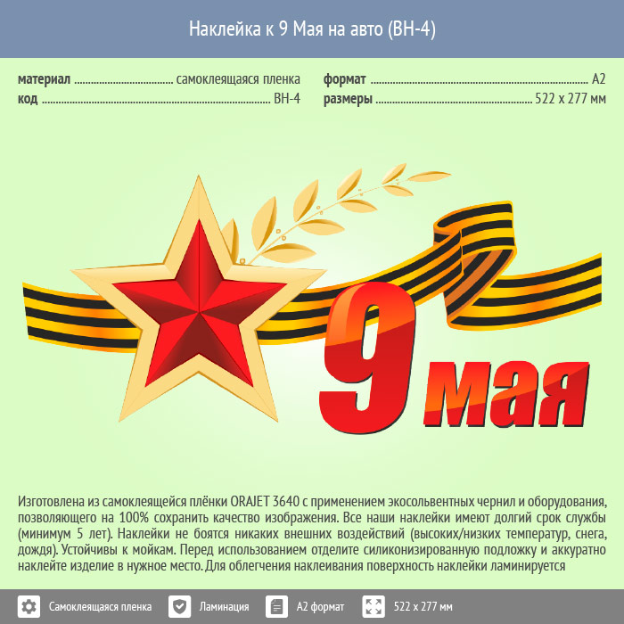 Наклейка к 9 Мая на авто А2 формата (BH-4) в Кызыле купить