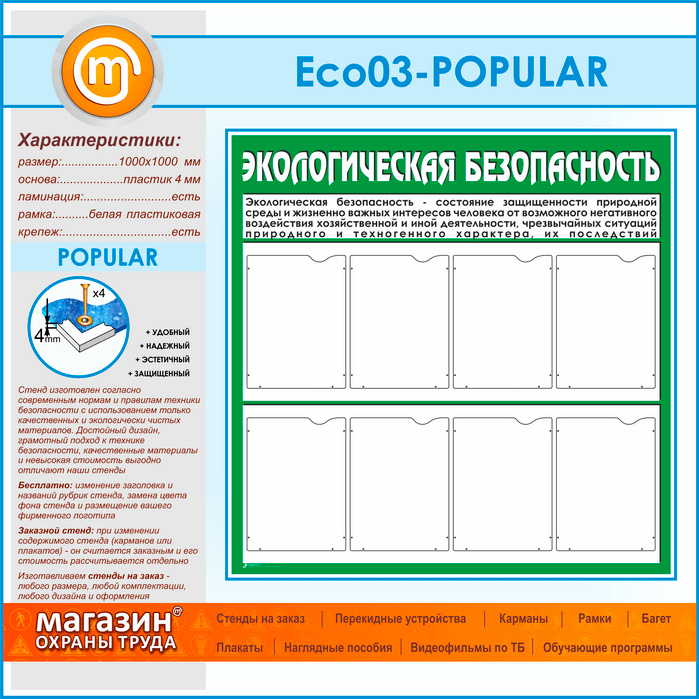Стенд «Экологическая безопасность» с 8 карманами (ECO-03-POPULAR) в Кызыле купить