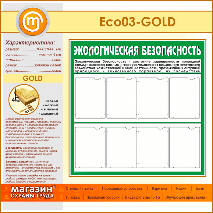Стенд «Экологическая безопасность» с 8 карманами (ECO-03-GOLD) в Кызыле купить