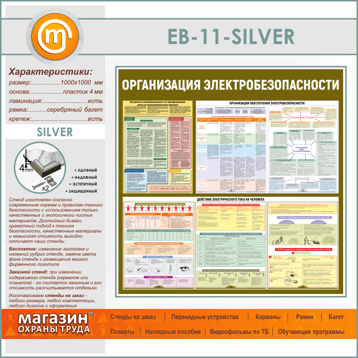 Стенд «Организация электробезопасности» (EB-11-SILVER) в Кызыле купить