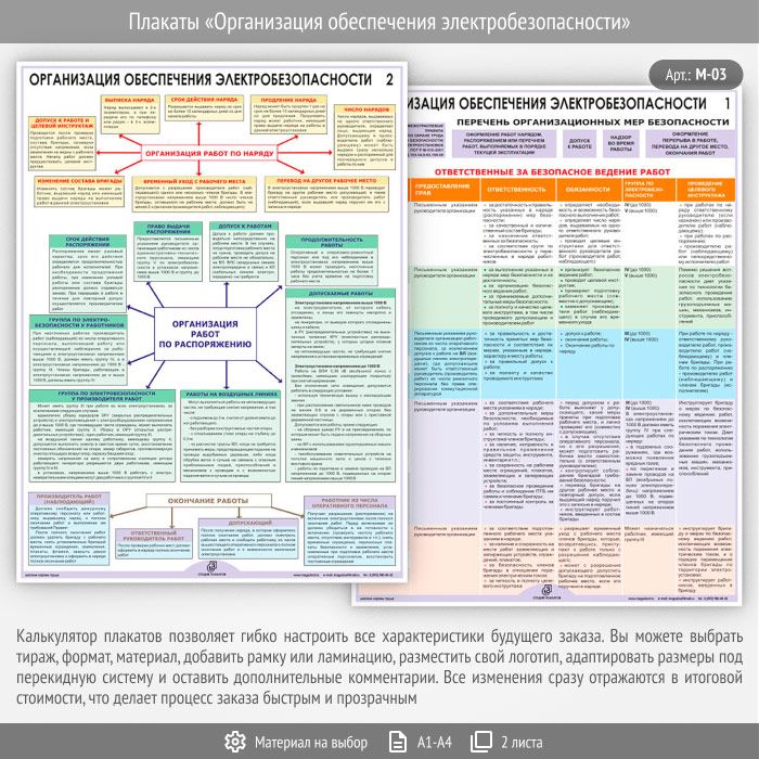 Плакаты «Организация обеспечения электробезопасности» (М-03, 2 листа) в Кызыле купить
