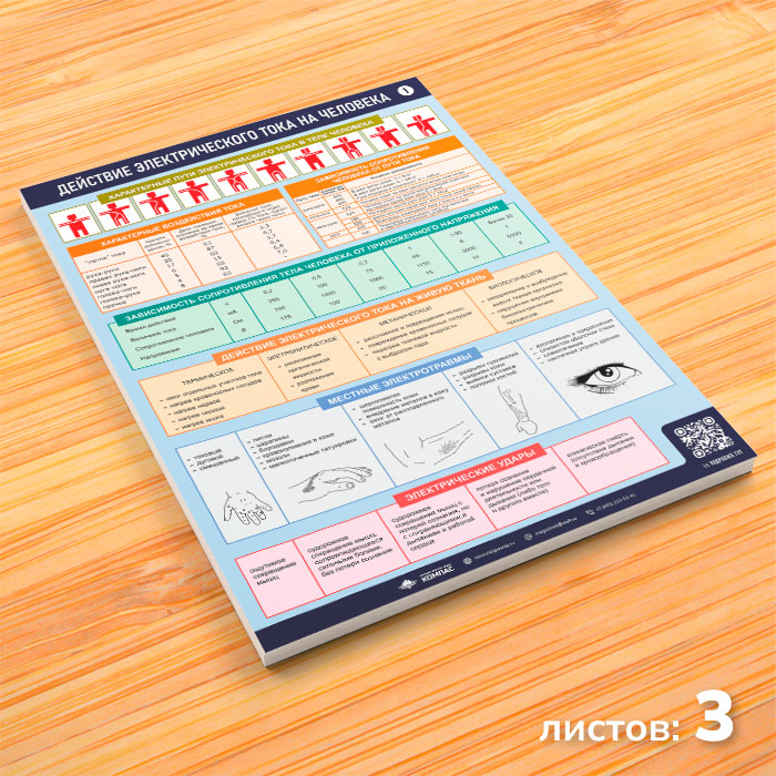 Плакаты «Действие электрического тока на человека» с QR (М-04, 3 листа) в Кызыле купить