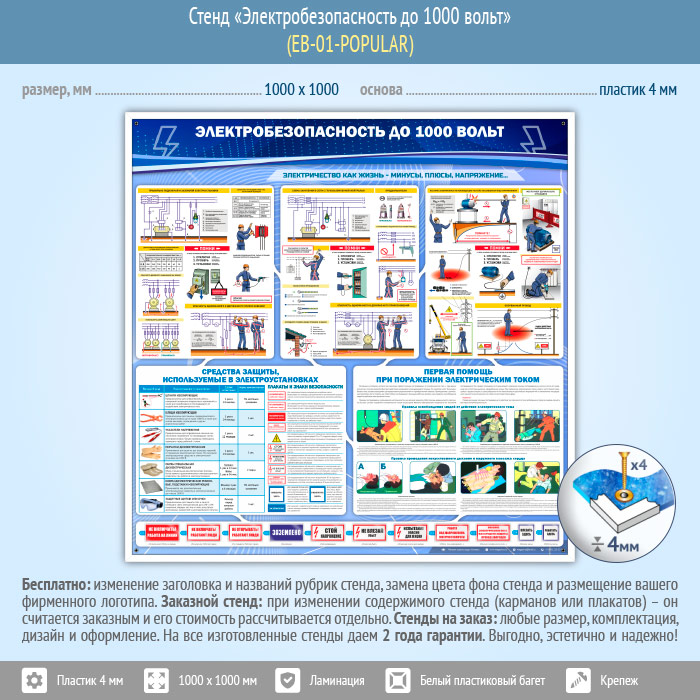 Стенд «Электробезопасность до 1000 вольт» (EB-01-POPULAR) в Кызыле купить