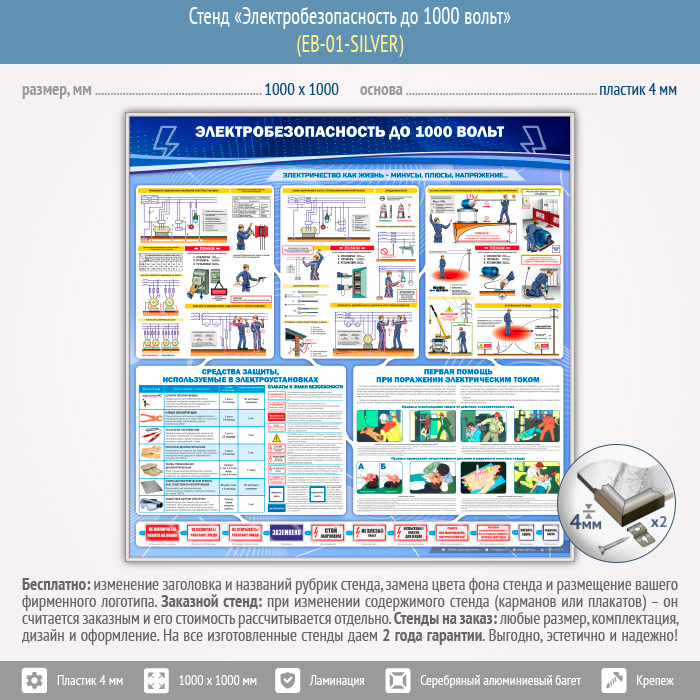 Стенд «Электробезопасность до 1000 вольт» (EB-01-SILVER) в Кызыле купить
