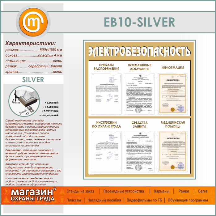 Стенд «Электробезопасность» с 6 карманами (EB-10-SILVER) в Кызыле купить
