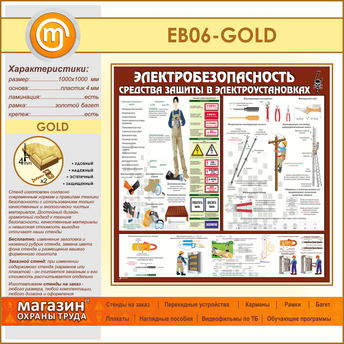 Стенд «Электробезопасность. Средства защиты в электроустановках» (EB-06-GOLD) в Кызыле купить