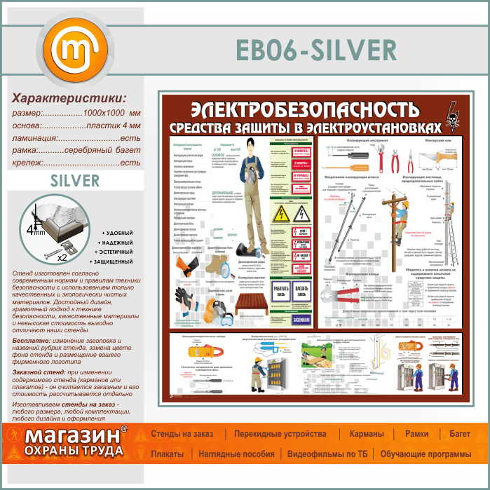 Стенд «Электробезопасность. Средства защиты в электроустановках» (EB-06-SILVER) в Кызыле купить
