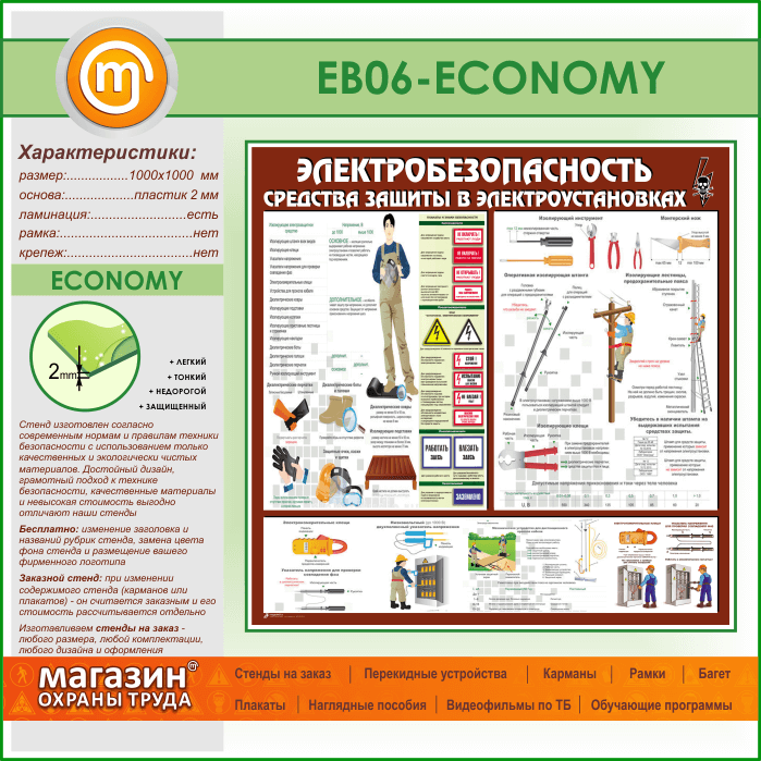 Стенд «Электробезопасность. Средства защиты в электроустановках» (EB-06-ECONOMY) в Кызыле купить