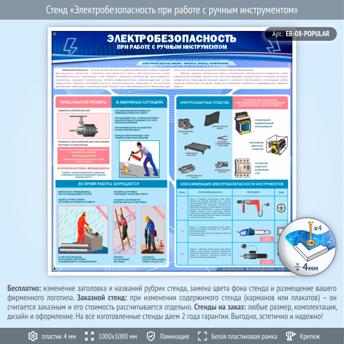 Стенд «Электробезопасность при работе с ручным инструментом» (EB-08-POPULAR) в Кызыле купить