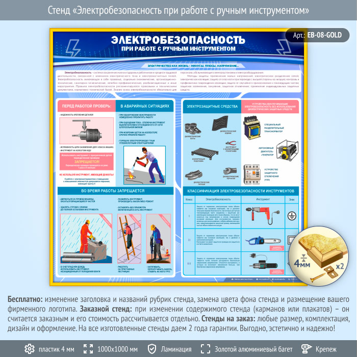 Стенд «Электробезопасность при работе с ручным инструментом» (EB-08-GOLD) в Кызыле купить