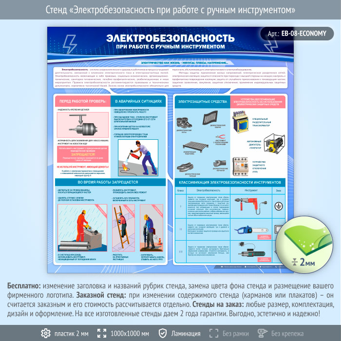 Стенд «Электробезопасность при работе с ручным инструментом» (EB-08-ECONOMY) в Кызыле купить