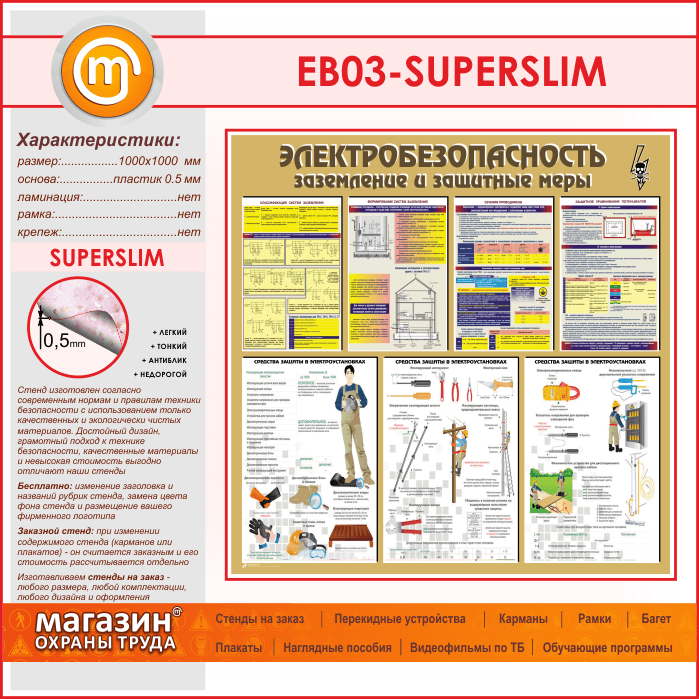 Стенд «Электробезопасность. Заземление и защитные меры» (EB-03-SUPERSLIM) в Кызыле купить