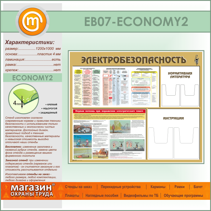 Стенд «Электробезопасность» с 4 объемными карманами (EB-07-ECONOMY2) в Кызыле купить